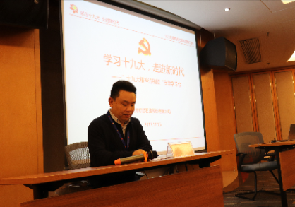 在这次学习贯彻党的十九大精神座谈会上,首先由副总裁胡灿明导读题为“学习十九大 走进新时代”的十九大报告核心内容;随后各参会人员踊跃讨论,积极发言,分享了对十九大会议报告的学习心得和体会,纷纷表示将不忘初心,为公司发展壮大添砖加瓦。